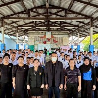 รับมอบชุดนักเรียน ในโครงการกาชาดปันน้ำใจมอบชุดนักเรียนและรองเท้านักเรียนให้แก่เด็กนักเรียนผู้ยากไร้ในพื้นที่จังหวัดชลบุรี