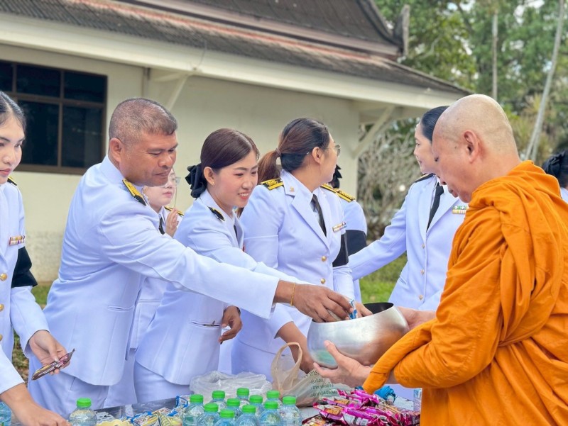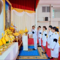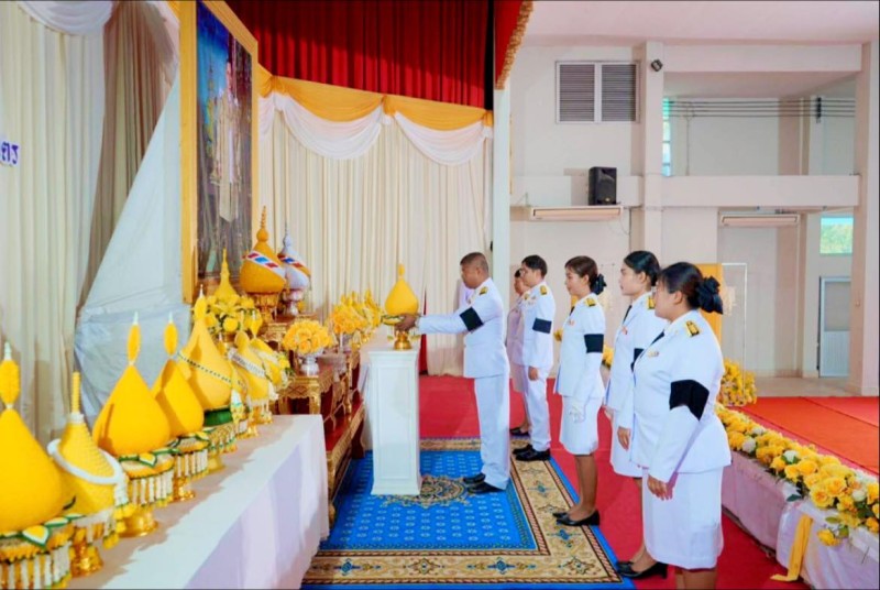 พิธีเจริญพระพุทธมนต์ทำบุญตักบาตรถวายพระราชกุศลและพิธีวางพานพุ่มถวายเครื่องราชสักการะ