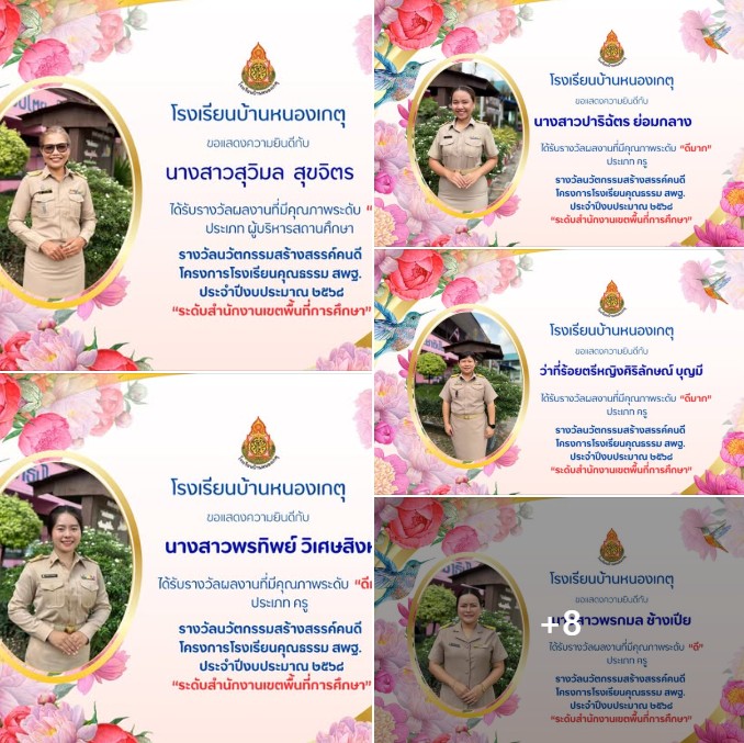 โรงเรียนบ้านหนองเกตุ ขอแสดงความยินดี นวัตกรรมสร้างสรรค์คนดี ประเภทผู้บริหารและครูผู้สอน ปีงบประมาณ พ.ศ.2568